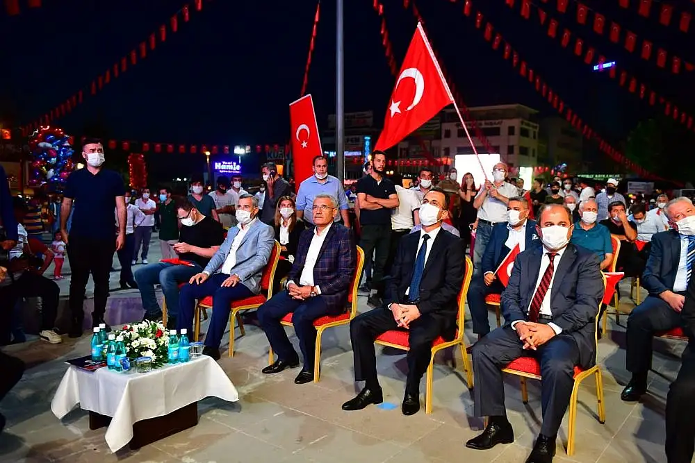 Programda konuşan Vali Aydın Baruş, 4 yıl önce 15 Temmuz gecesinin karanlık bir gece olduğunu ifade ederek, “Hiç kimse Türkiye’nin vatanımızın kendi vergileriyle donattığı, kendi imkanlarıyla ellerine silah verdiği birkaç hainin suikast düzenleyeceğini tahmin edememişti. Bütün milletimiz şok olmuştu. Gerçekten 15 Temmuz karanlık bir geceydi. Aslında 15 Temmuz milletimizin bağımsızlığını, dünyada adaleti haykırmasını, dünya mazlumlarına kol kanat germesini hazmedemeyen uluslararası güçlerin piyonu olan hain FETÖ terör örgütünün bu milletin kaderine hakim olacağını zanneden zavallı takipçilerinin umutsuz bir teşebbüsüydü. Neden umutsuzdu? Çünkü onlar hesap edememişlerdi bu milletin kahraman evlatları bin yıldır Anadolu’da bu tür ihanet teşebbüslerine kaldı ve her sefer içerisindeki hainleri def ederek anlı ak, başı dik bir şekilde bayrağına ezanına namusuna ve haysiyetine sahip çıktı.” diye konuştu.