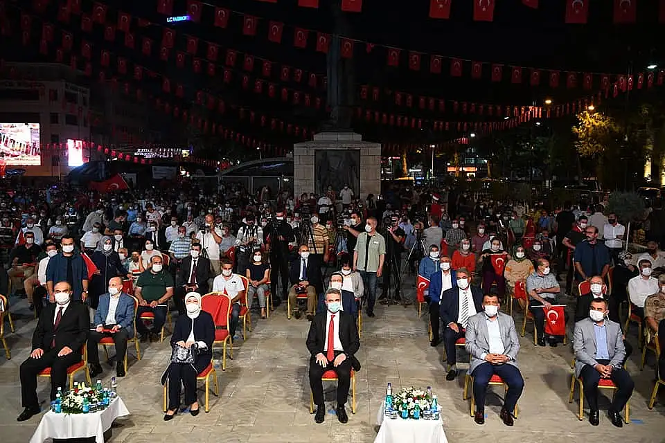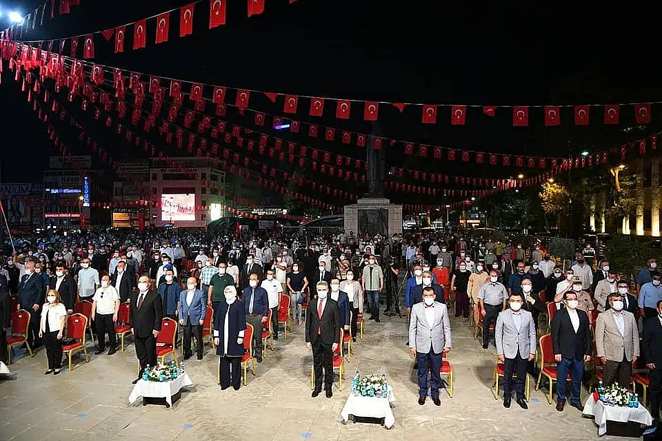 Anma programına gelen vatandaşlar, güvenlik arama noktasından geçerek içeri alınırken, binlerce vatandaş ellerinde Türk bayrakları ile darbe girişimini aleyhine sloganlar attı. İl Müftüsü Veysel Işıldar’ın Kuran’ı Kerim tilaveti ile başlayan etkinlikte 15 Temmuz’da şehit olanlar için hep birlikte dualar edildi.
