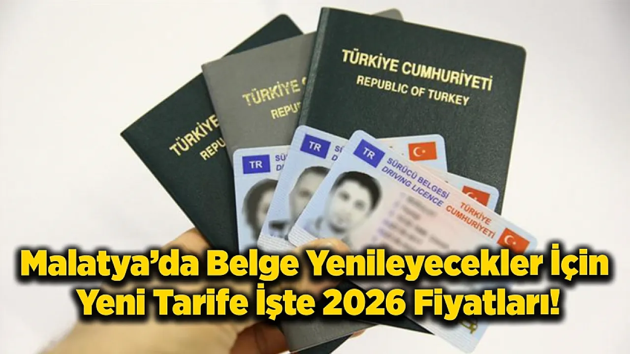 Malatya başta olmak üzere tüm illerde 1 Ocak 2026'dan itibaren geçerli olacak yeni tarifeye göre pasaport bedeli 1351 TL, ehliyet ücreti ise 1690 TL olarak güncellendi.