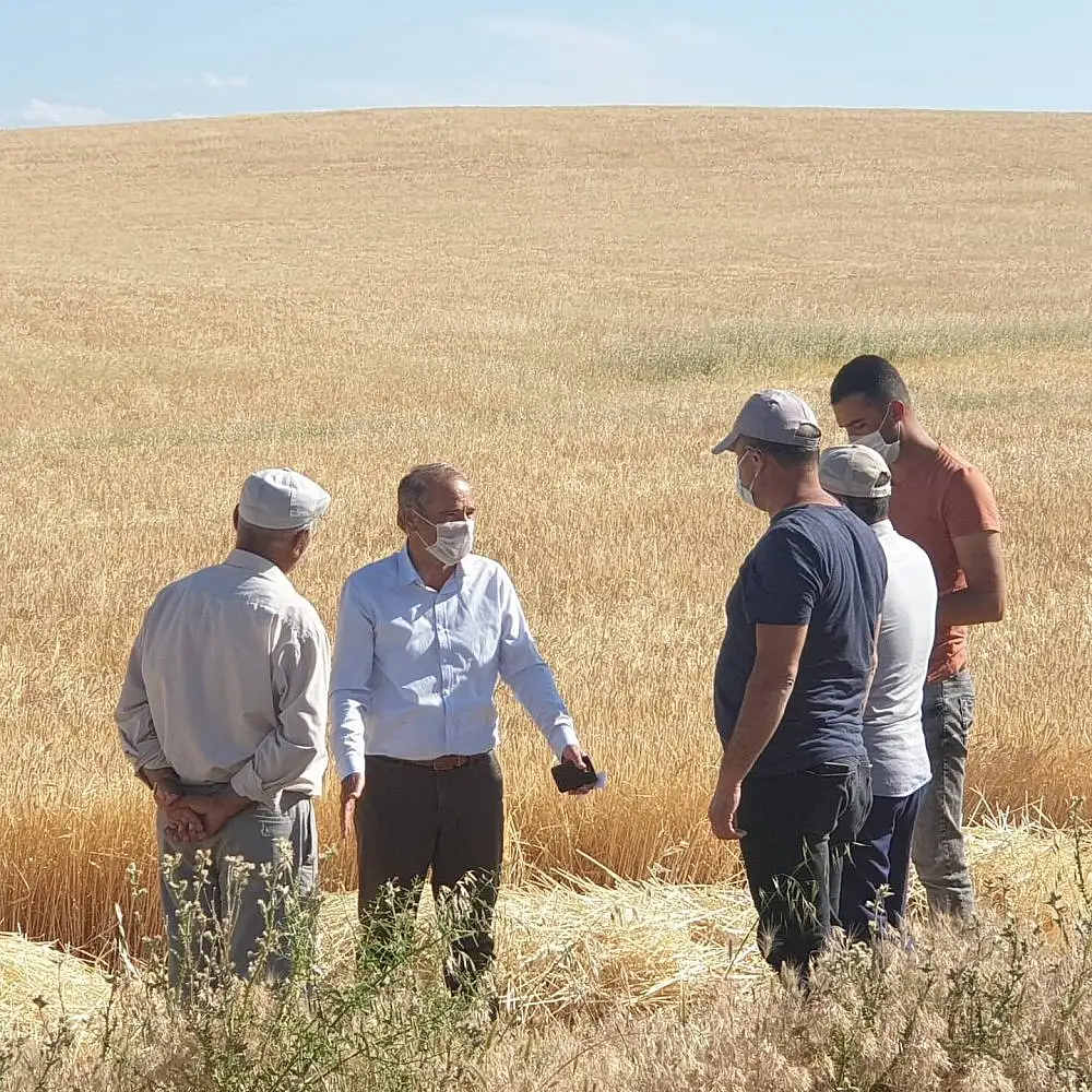 Arguvan Ziraat Odası Başkanı Turan Aslantürk ve Arguvan Doğal Tarımsal Kalkınma Kooperatifi Başkanı Süleyman Yücel ile birlikte hasat yapan çiftçilerimizi tarlada ziyaret eden Başkan Kızıldaş, “İİlk biçerdöver Gümüşlü Mahallemizde çalışmaya başlarken, yeni sezonun tüm çiftçilerimiz için bereketli olmasını diliyorum” dedi.