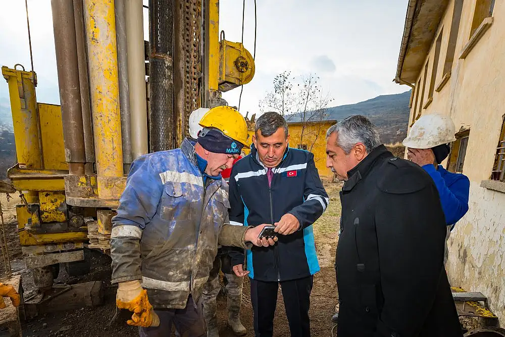 Malatya Büyükşehir Belediyesi Su ve Kanalizasyon İdaresi (MASKİ) Genel Müdürlüğü, içme suyu, kanalizasyon ve yağmursuyu altyapı çalışmalarının yanı sıra sondaj ve drenaj çalışmalarına devam ediyor. Çalışmalar kapsamında Yeşilyurt İlçesi’ne Bağlı Görgü (Cafana) Mahallesi’nde sondaj çalışması neticesinde saniye yaklaşık 50 litre su bulundu. MASKİ Genel Müdürü Mehmet Mert, Görgü Mahalle Muhtarı Ayhan Yıldız ve MASKİ Genel Müdürlüğü teknik ekibi yapılan çalışmaları yerinde inceledi.