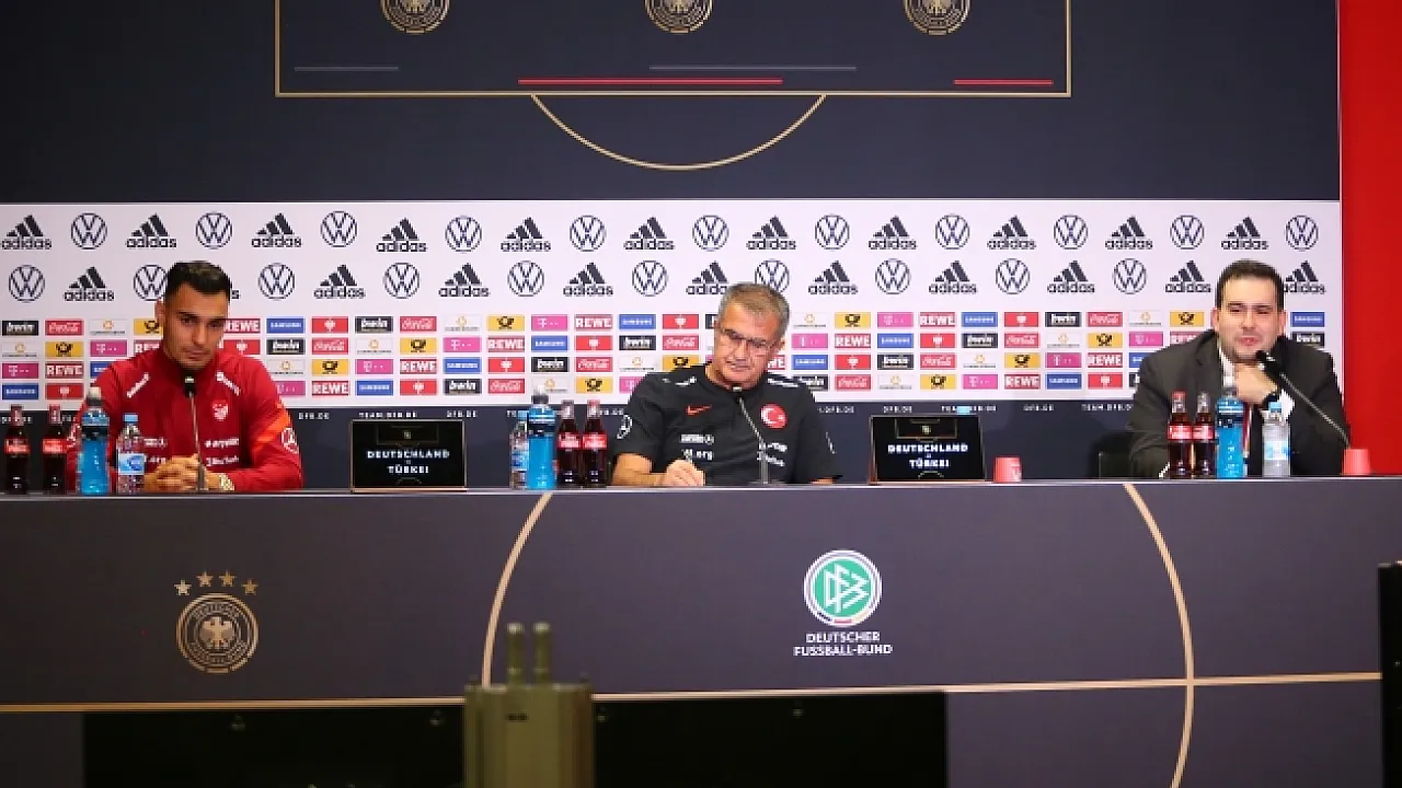 A Milli Futbol Takımı Teknik Direktörü Şenol Güneş, Almanya maçı öncesinde yarın müsabakanın oynanacağı Rhein Energie Stadı'nda milli futbolcu Kaan Ayhan ile birlikte video konferans yoluyla bir basın toplantısı düzenledi.