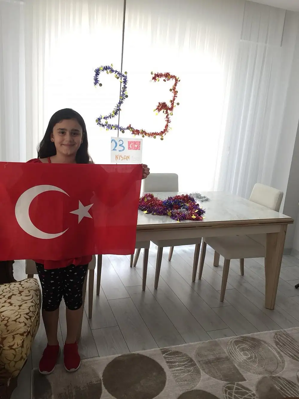 23 Nisan Ulusal Egemenlik ve Çocuk Bayramı'nı evlerinde kutlayan çocuklar, evlerinin balkonları, camları ile odalarının duvarlarını Atatürk posteri, Türk bayrağı, balon ve rengarenk pankartlarla süsledi.