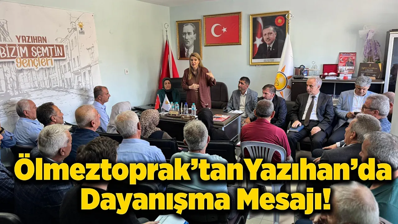 Toplantıda birlik ve dayanışma vurgusu yapan Milletvekili Ölmeztoprak, “Türkiye Yüzyılı hedefleri doğrultusunda aziz milletimizden aldığımız güçle yolumuza kararlılıkla devam ediyoruz. Yazıhan’daki buluşmalarımızda geleceğe dair umutlarımızı, hedeflerimizi ve inancımızı bir kez daha paylaştık.” ifadelerini kullandı.