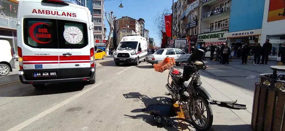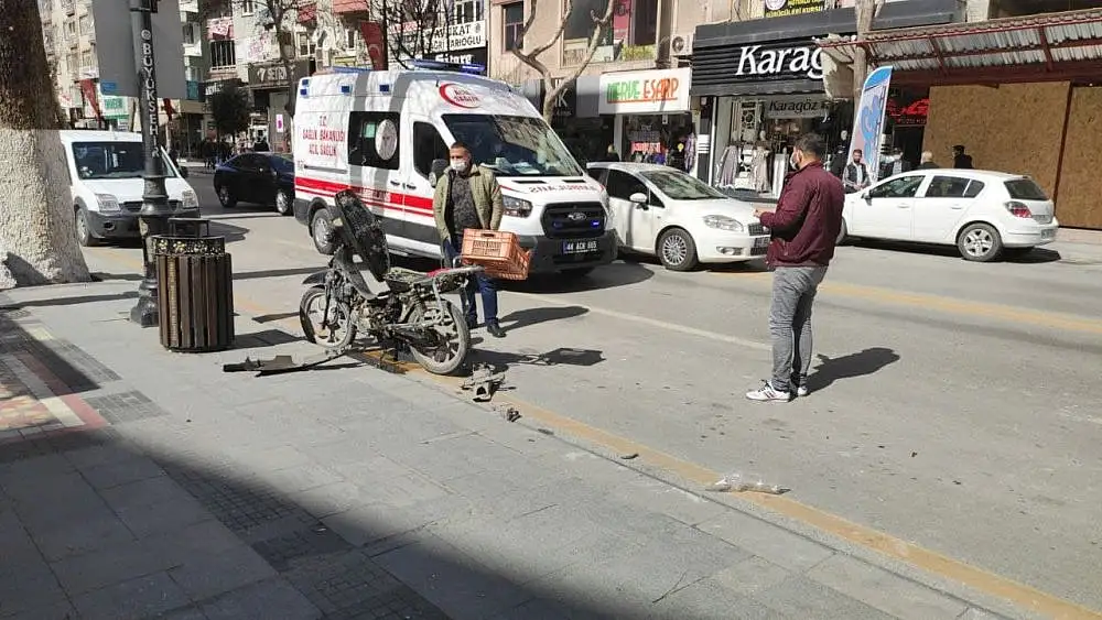 Malatya'da motosiklet ile çarpışan otomobil kaldırıma çıktı. Kazada yola savrulan 3 kişi yaralandı.
