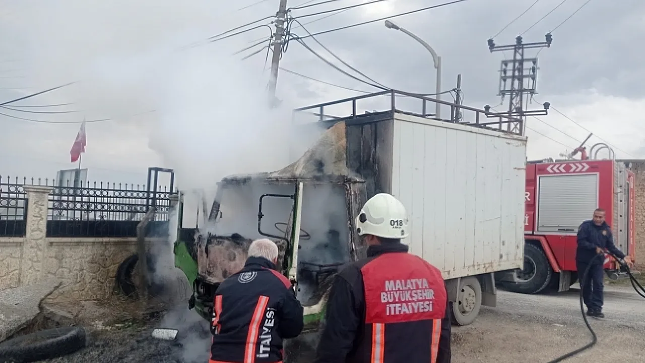 Malatya'da park halindeki bir kamyon yanarak kullanılamaz hale geldi.