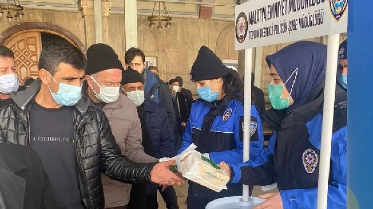 Malatya'da İl Emniyet Müdürlüğü ekipleri Regaip Kandili dolayısıyla vatandaşlara kandil simidi dağıttı.