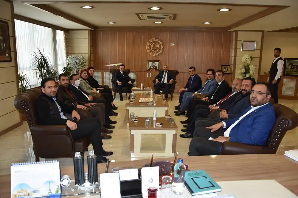 Vakıf Bank Malatya Bölge Müdürü Osman Tırpan ve bölge müdürlüğü yöneticileri Malatya Ticaret ve Sanayi Odası (MTSO) Başkanı Oğuzhan Ata Sadıkoğlu'nu ziyaret etti.