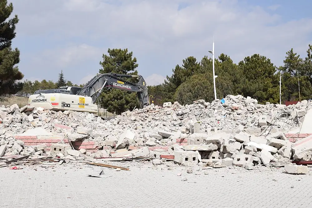 Sultansuyu Harası'nda depremde hasar gören binanın yıkımına başlandı
