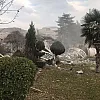Depremler sonucu ağır hasar gördüğü için yıkımına karar verilen betonarme yapı olan minare iş makinesi ile saniyeler içinde kontrollü olarak yıkıldı.
