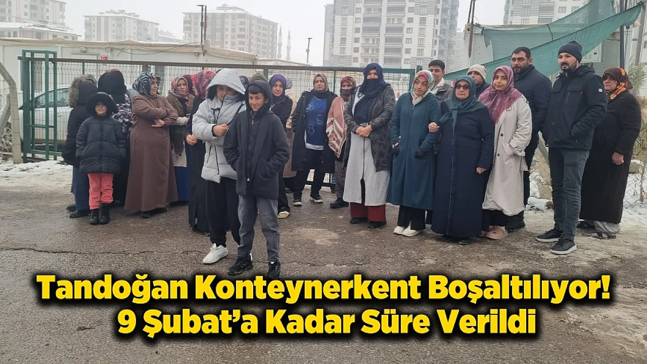Malatya'nın Battalgazi ilçesinde bulunan Tandoğan Konteyner Kent sakinlerine, 9 Şubat'a kadar alanın boşaltılması yönünde tebligat gönderildi. Hak sahiplerinin konutlarına yerleşmesinin ardından konteyner kentte kalan çoğunluğu kiracı onlarca aile, başka bölgelere nakledileceklerini öğrendi. Kışın ortasında gelen bu karar, özellikle çocukların eğitim hayatının aksayacağı endişesiyle depremzedelerin tepkisine neden oldu.