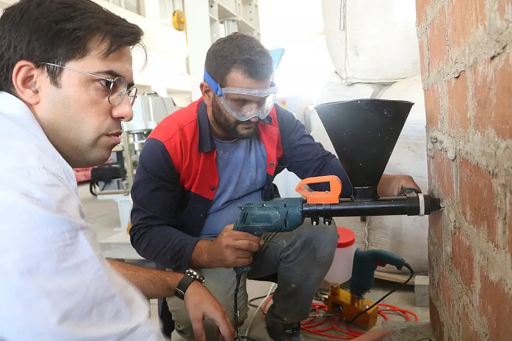 Maliyeti düşük, dayanıklılığı yüksek ve çimentosuz tamir harçlarının üretimini yaptıklarını belirten Maraş, “Şu anda restorasyonlarda kullanılan tamir harçlarından yaklaşık 20 kat daha fazla dayanıklı tamir harçları ürettik. Bunların uygulamasını ürettiğimiz yığma duvarlar üzerinde uyguladık. Burada yaptığımız tamir harçlarını daha sonra yükleme sistemi dediğimiz çerçeve sistemde kırarak bunları gerçekleştirdik. Burada yaptığımız basınç dayanım testinde ise duvar elemanlarının taşıyıcı sistemlerinde 5 kat daha fazla dayanım elde ettik. Üretici olarak ekonomik ve maliyeti oldukça düşük. Şu anda fabrikalarda üretilen yan ürün dediğimiz maliyeti oldukça düşük olan yüksek fırın cürufunu ve farklı kimyasallar kullanarak ürettik. Bu ürettiğimiz tamir harçları tamamen çimentosuz tamir harçları olarak üretimimizi yaptık” ifadelerini kullandı.