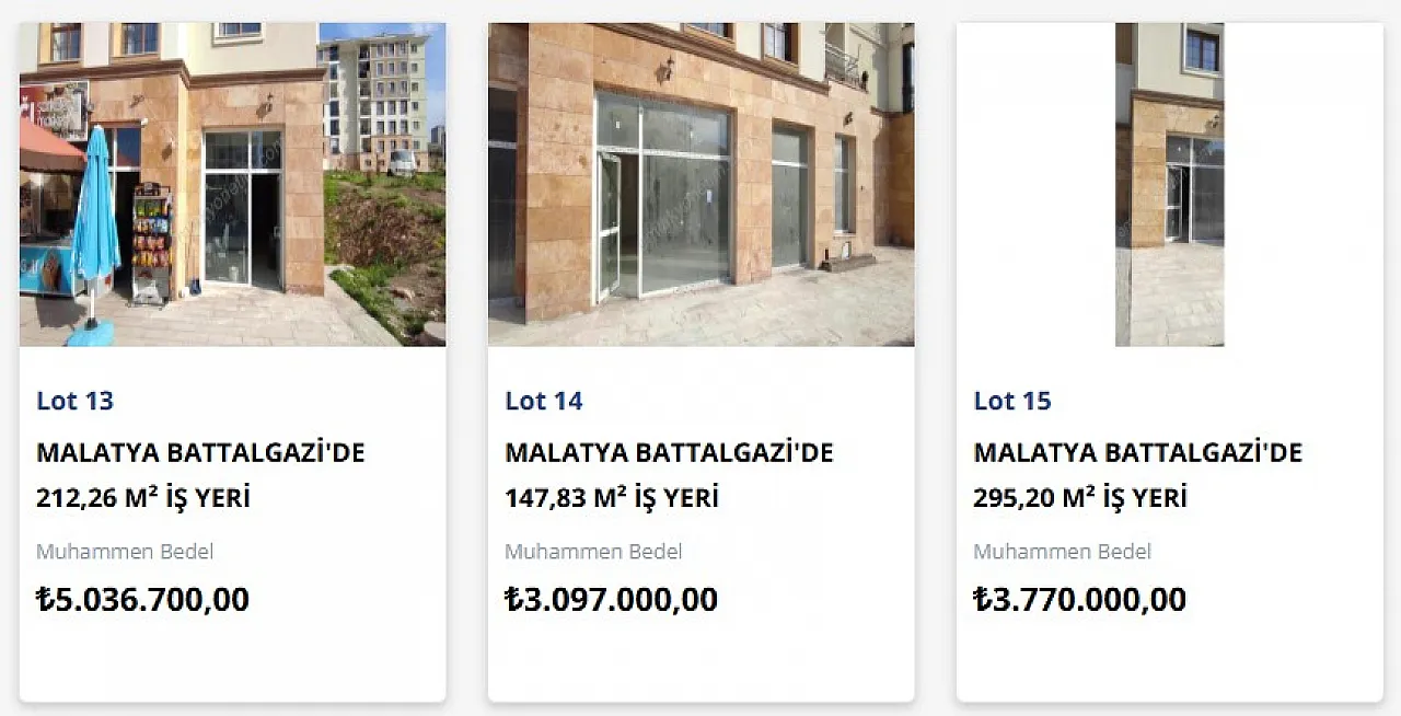 Toplu Konut İdaresi Başkanlığı (TOKİ), 21 ilde toplam 102 iş yerini açık artırma yöntemiyle satışa sunuyor. Malatya'da satışa çıkarılan 3 iş yeri, Battalgazi ilçesi Beydağı Mahallesi'nde yer alıyor. Dükkanlar, hem yatırımcılar hem de ticari faaliyete başlamak isteyen esnaflar için cazip fırsatlar sunuyor.