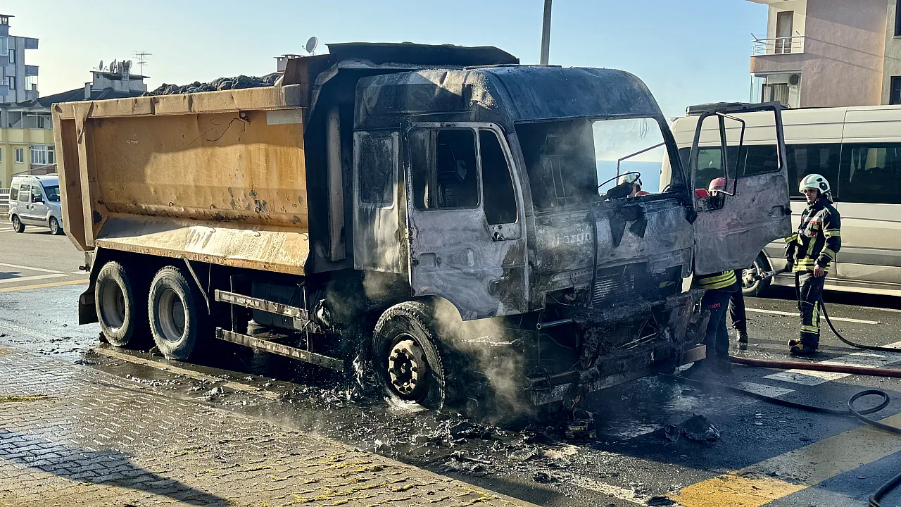 Trabzon'un Ortahisar ilçesinde seyir halindeyken motor kısmından alevler yükselen hafriyat yüklü tır, itfaiye ekiplerinin müdahalesiyle söndürüldü. Olayda araçta maddi hasar meydana gelirken, sürücünün dikkati olası bir faciayı önledi.