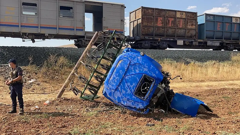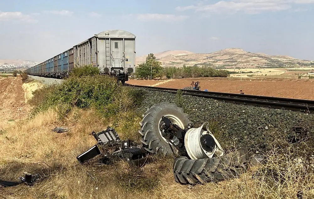 Tren faciası! Hemzemin geçitte traktöre çarptı, traktör ikiye bölündü