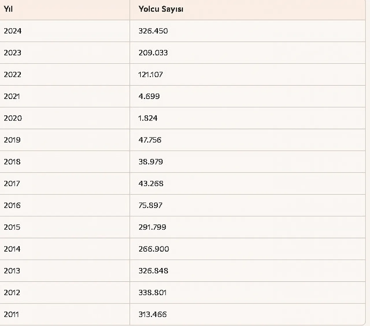 Yıllara göre temmuz ayı yolcu sayıları şöyle: