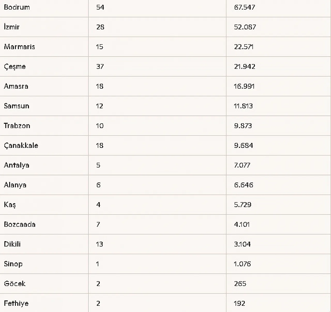 Diğer limanlardaki yolcu sayıları ise şöyle: