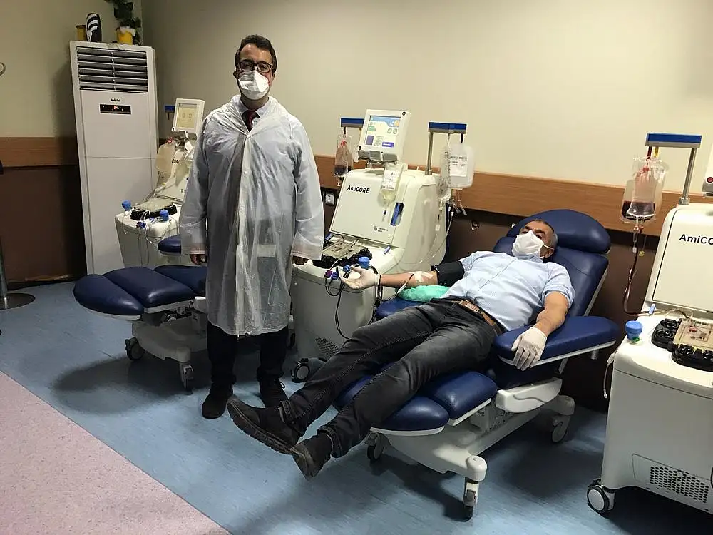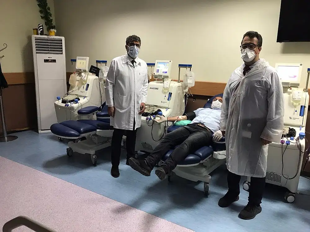 Turgut Özal Tıp Merkezi Kök Hücre Nakli ve Aferez Ünitesi Sorumlusu Prof. Dr. Mehmet Ali Erkurt, Türkiye’de korona virüse karşı ilk defa bu plazma tedavisine başladıklarını belirterek, tedavinin sonucunun ise 48-72 saat arasında ortaya çıkacağını söyledi. Bu tedavinin korona virüsüne karşı ilk defa Çin’de uygulandığını anımsatan Erkurt, “Çin’den sonra bütün dünyada ilk defa Türkiye’de İnönü Üniversitesi Turgut Özal Tıp Merkezi’nde kullanılmaya başladı. Bu tedavi içerisinde iyileşmiş hastalardaki bulunan antikorların bu hastalığı geçiren hastalara verilerek onları iyileştirmesi planlanıyor. Bu tedavi aslında modern aşının atası olarak kabul ediliyor. Aşı bulununcaya kadar bu hastaların özellikle yoğun bakımda ve entübe olmuş şu anda Türkiye’de yaklaşık 2 bin 400 tane bu tip hastamız var. Bunların tedavisinde kullanılacak” dedi.