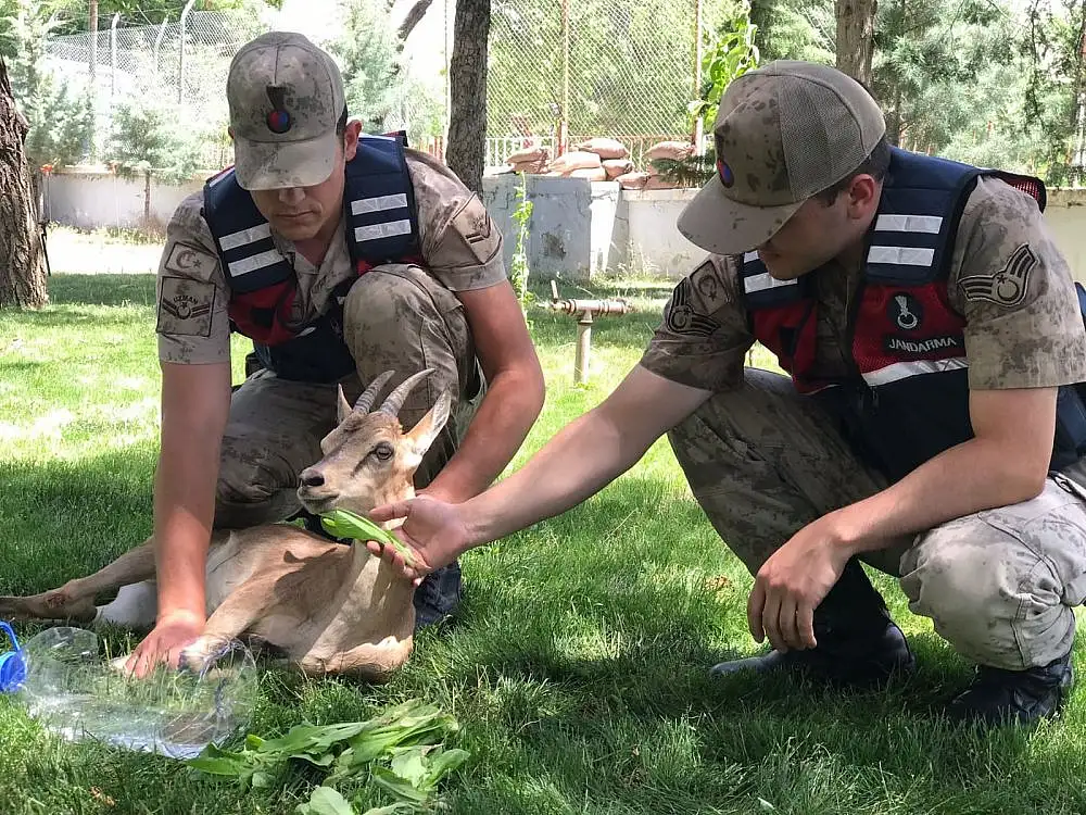 Yaralı dağ keçilerine jandarma şefkati