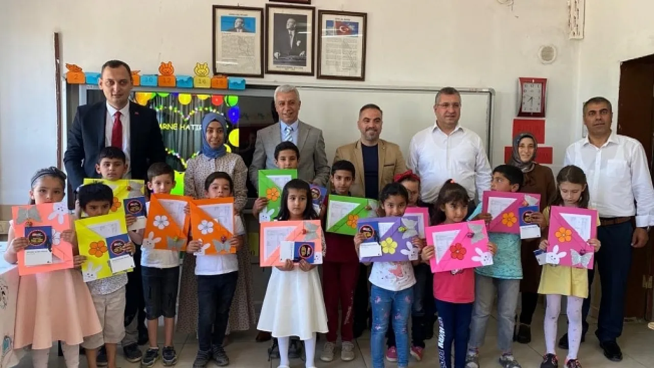 Kaymakam Mehmet Faruk Kazdal, başarılı öğrencileri tebrik ederek, karnelerini verdi.