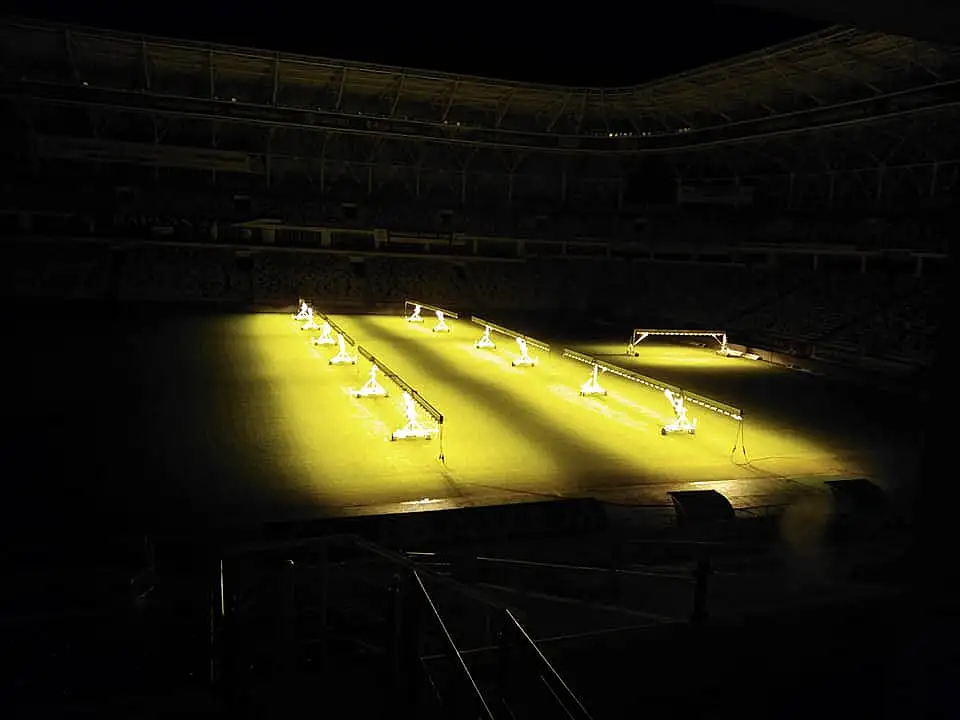 Zemin bakım çalışmaları kapsamında, kış mevsiminde zeminin zarar görmesi ve daha önce zarar gören bölümlerin iyileştirilmesi için çime çeşitli bakımlarla birlikte ultraviyole ışınları uygulanıyor.