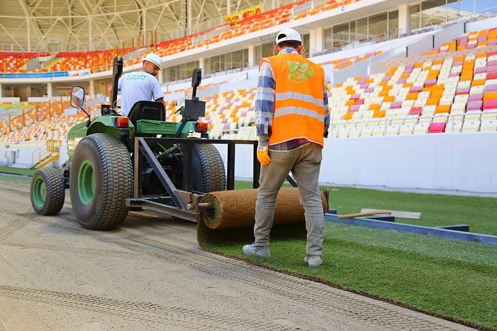 Süper Lig ekiplerinden Yeni Malatyaspor'un iç saha maçlarına ev sahipliği yapan Yeni Malatya Stadyumu'nda çim serimi başladı.