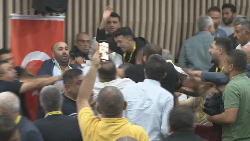 Trendyol 1. Lig'de mücadele eden Yeni Malatyaspor'un olağanüstü seçimli genel kurulunda gergin anlar yaşandı. Mevcut Başkan Adil Gevrek konuşurken yaşanan tartışma sonrası yumruklu kavga çıktı.