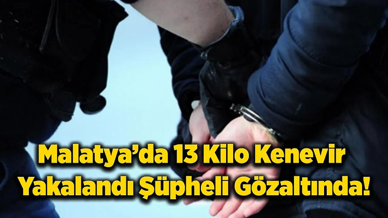 Malatya'da uyuşturucu ile mücadele kapsamında yürütülen çalışmalar neticesinde, Yeşilyurt ilçesinde gerçekleştirilen operasyonda 13 kilo 560 gram kenevir ele geçirildi. İl Emniyet Müdürlüğü ekiplerinin titizlikle yürüttüğü operasyon sonucunda 1 şüpheli gözaltına alındı.